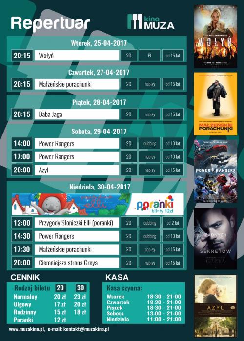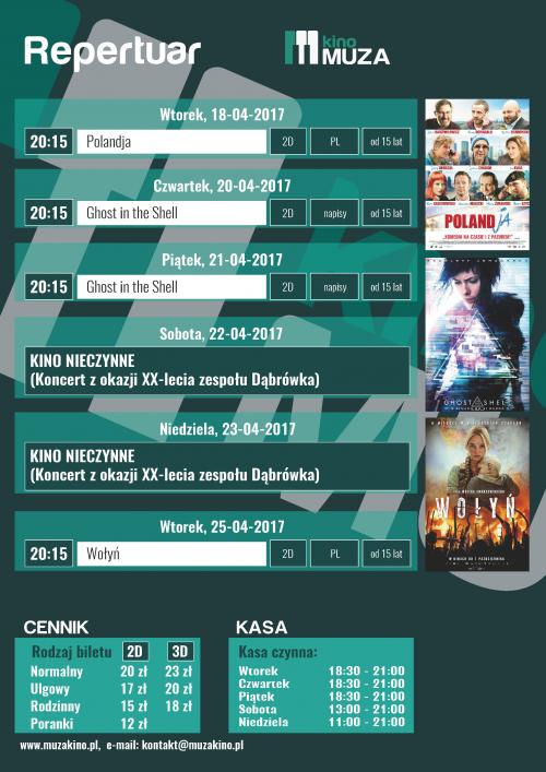 Repertuar KINA MUZA - 11 - 17 kwietnia 2017 r. |
