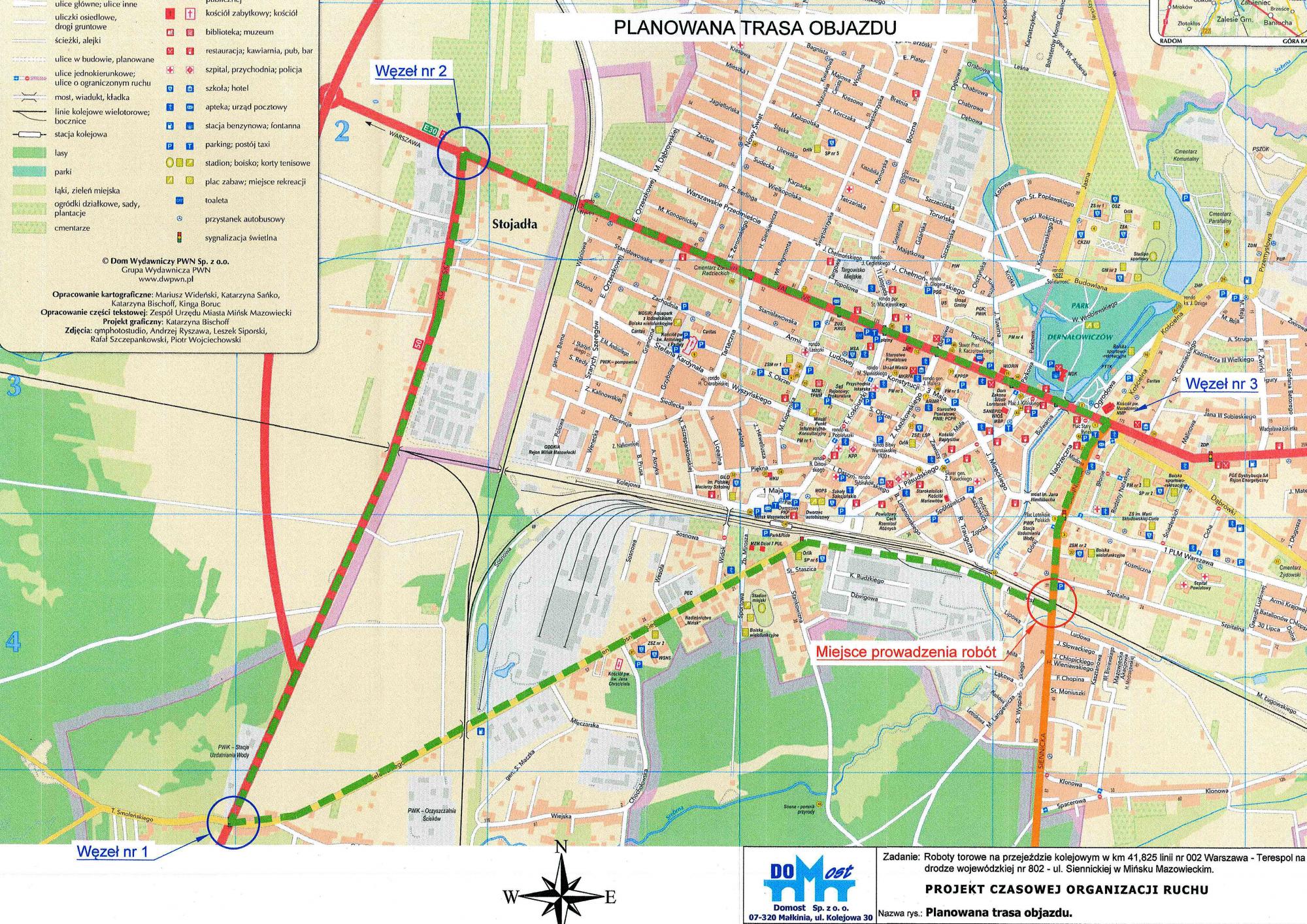 W związku z planowanym remontem przejazdu kolejowego w ciągu linii kolejowej nr 002 na drodze wojewódzkiej 802 w miejscowości Mińsk Mazowiecki, DOMOST Sp. z o.o. informuje o wprowadzeniu czasowej organizacji ruchu od dnia 24.IV.2017r. do dnia 28.IV.2017r. w godz. od 20.00 do 6.00 na drodze wojewódzkiej 802 w miejscowości Mińsk Mazowiecki. Zmiana organizacji polegać będzie na poprowadzeniu objazdu krajowymi drogami numer 50 i 92 oraz ulicą Mrozowską i gen. K. Sosnkowskiego.