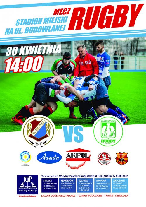 Czas na rugby. Zapraszamy 30 kwietnia o godz. 14.00 na stadion przy ul. Budowlanej.