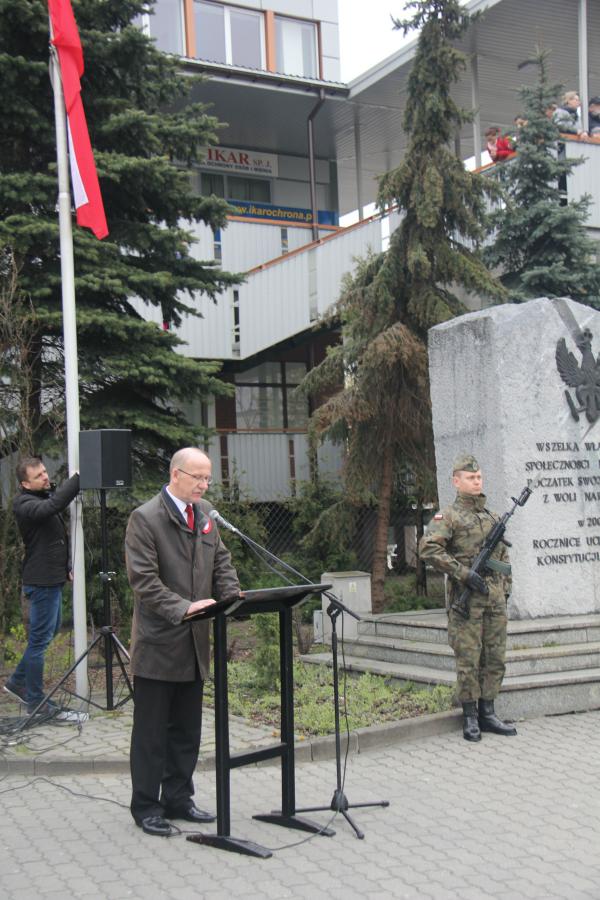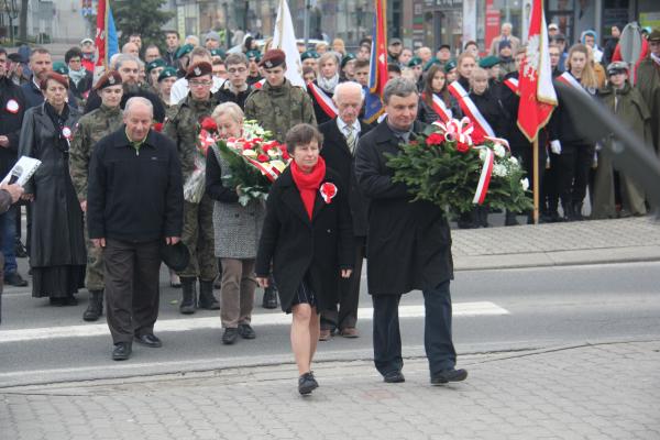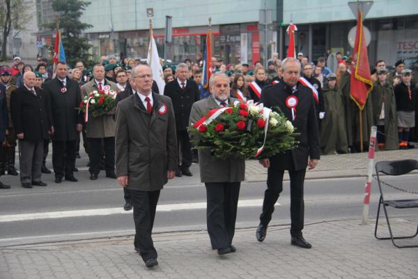 Okolicznościowe przemówienia wygłosili: Zastępca Burmistrza Miasta Krzysztof Michalik, Posłowie na Sejm RP Teresa Wargocka, Czesław Mroczek, Daniel George Milewski, Sędzia Trybunału Stanu Andrzej Kojro. Wiązanki kwiatów pod pomnikiem, gdzie wartę honorową pełnili żołnierze z 23. Bazy Lotnictwa Taktycznego złożyli m.in.: parlamentarzyści, Starosta Miński, Zastępca Burmistrza Miasta, Wójt Gminy Mińsk Mazowiecki, Radni Rady Miasta Mińsk Mazowiecki, przedstawiciele służb mundurowych, dyrektorzy miejskich instytucji kultury, dyrektorzy placówek oświatowych z terenu Miasta Mińsk Mazowiecki, kombatanci, przedstawiciele organizacji pozarządowych, instytucji publicznych. Oprawę muzyczną zapewniła Orkiestra Dęta Miasta Mińsk Mazowiecki.