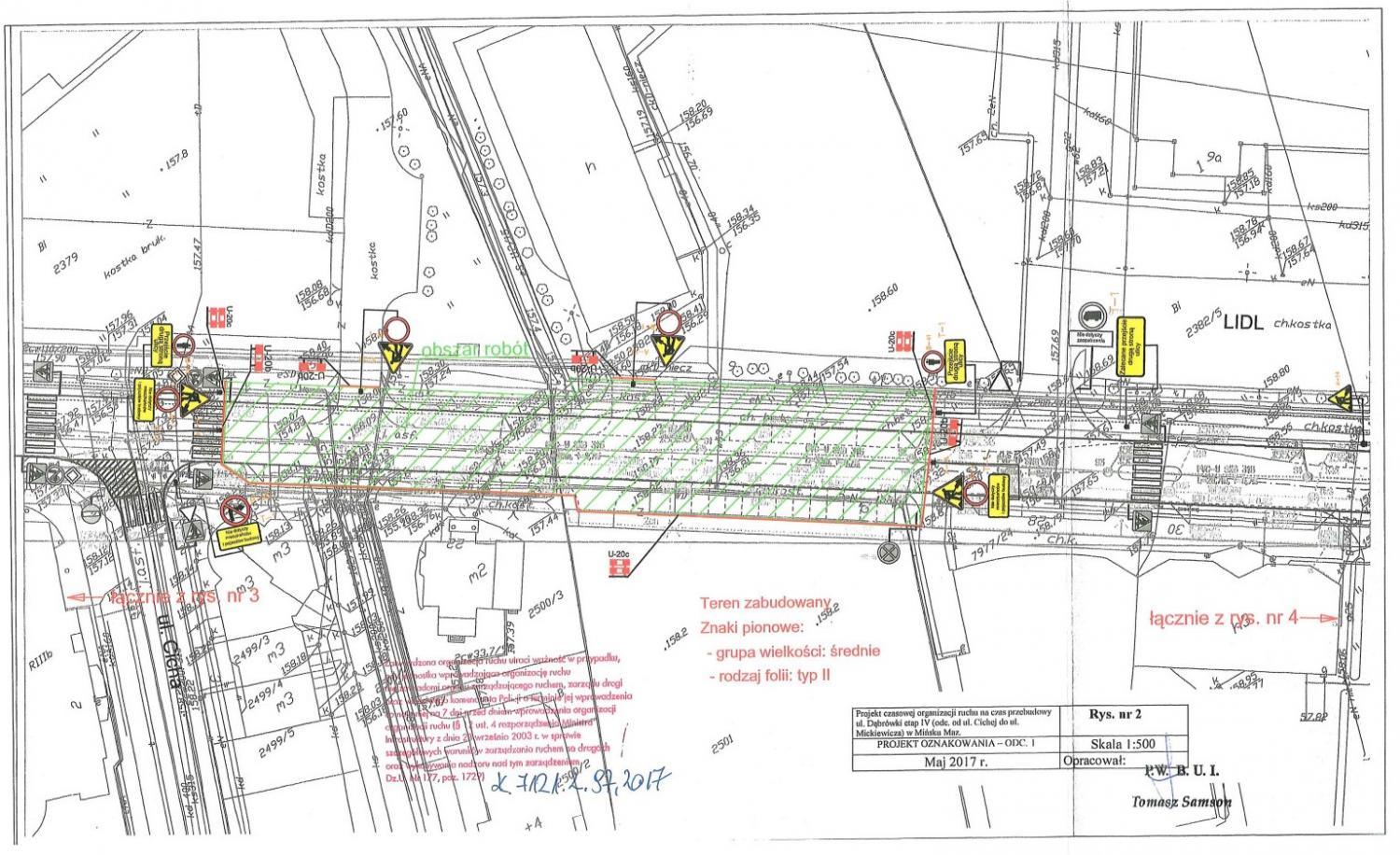 W związku z realizacją inwestycji polegającej na rozbudowie ul. Dąbrówki, zostaje wprowadzona czasowa organizacja ruchu.