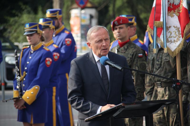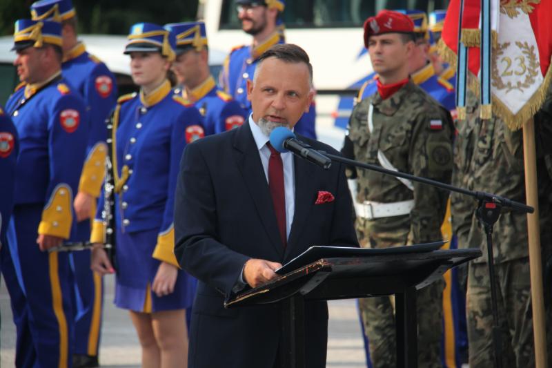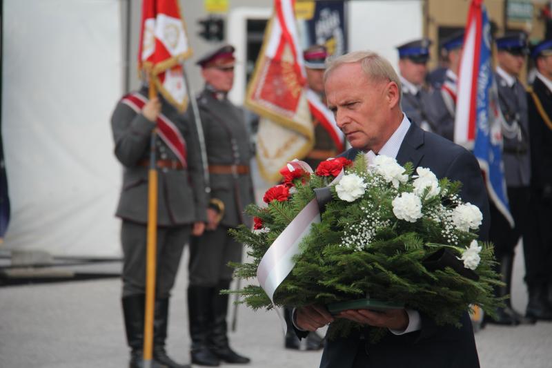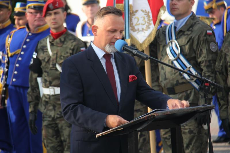 Po odegraniu hymnu Polski przez Orkiestrę Dętą Miasta Mińsk Mazowiecki pod batutą Marcina Ślązaka, przemówienie okolicznościowe wygłosił burmistrz Marcin Jakubowski.