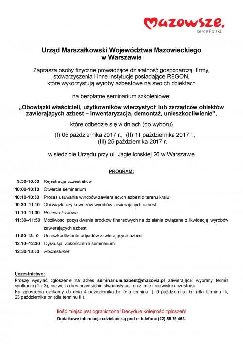 Bezpłatne seminarium szkoleniowe dot. azbestu |