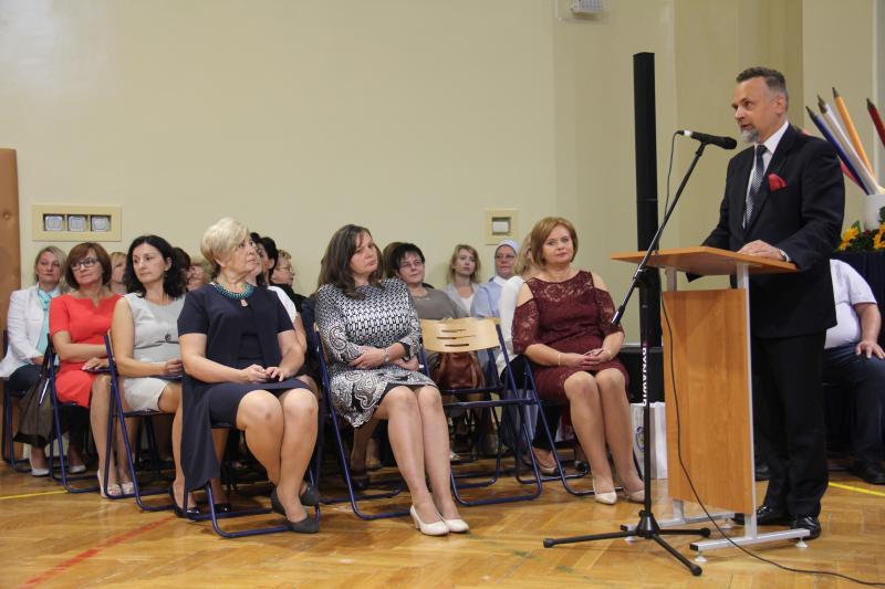 Pani Anna Zalewska dodała, że rok ten niesie ze sobą wiele wyzwań, bo jest to pierwszy rok wdrażania reformy edukacji. Zapewniła, że zmiany w systemie edukacji będą ewolucyjne. Zacytowała również życzenia ministra edukacji narodowej skierowane do nauczycieli, uczniów i pracowników szkół z okazji rozpoczynającego się roku szkolnego: Życzę, aby wyzwania, jakie pojawią się w najbliższych miesiącach były dla każdego źródłem satysfakcji i dodawały motywacji do dalszych działań. Pani dyrektor przywołała także tragiczne wydarzenia z września 1939 roku. Ofiary wojny zostały uczczone minutą ciszy. Dyrekcja przedstawiła także wychowawców poszczególnych klas.