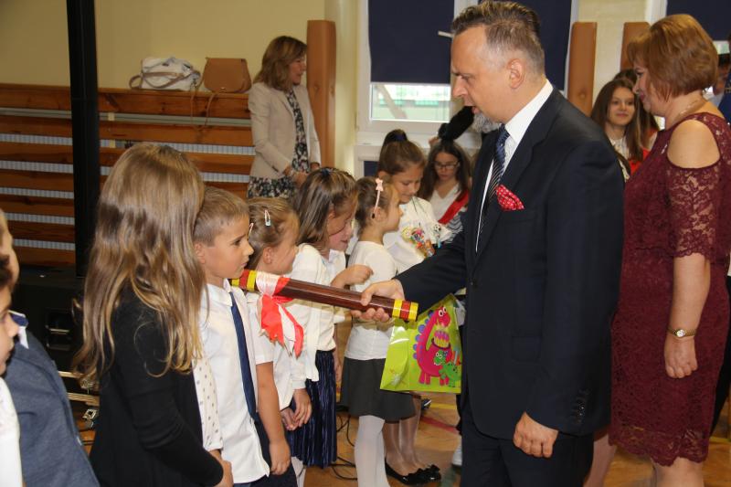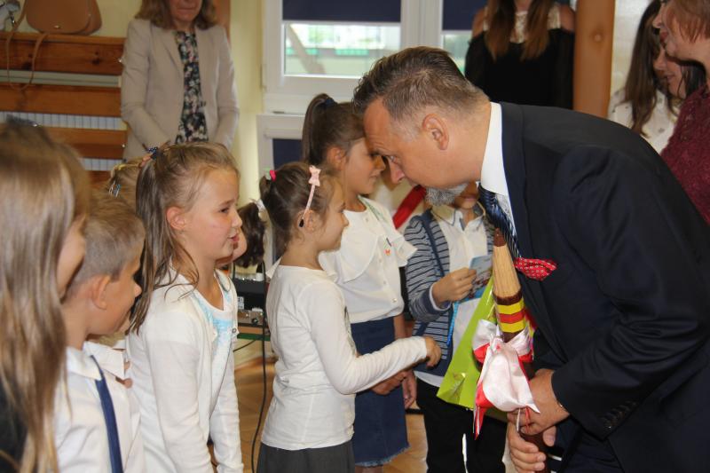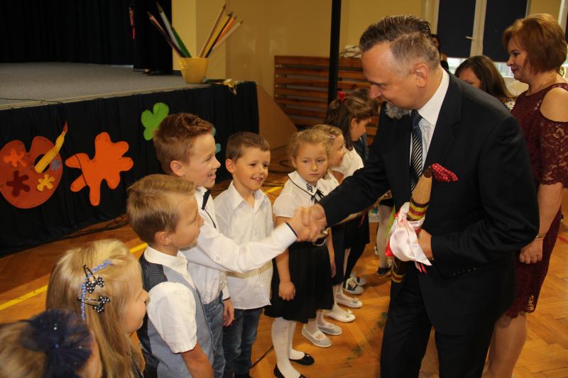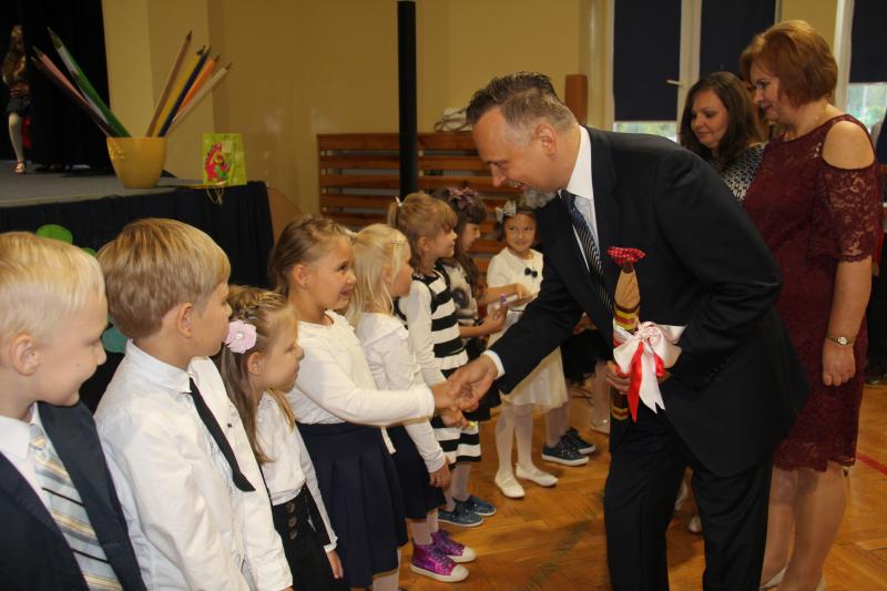 Pani dyrektor SP 6, Anna Zalewska, zwróciła się do zebranych z miłymi słowami powitania – wszystkim wychowankom życzyła sukcesów, a rodzicom owocnej współpracy z placówką. Szczególnie serdeczne przesłanie skierowała do uczniów klas pierwszych, wyrażając nadzieję, że czas pobytu w szkole będzie dla nich pełen pozytywnych doświadczeń związanych ze zdobywaniem wiedzy. Inaugurację roku szkolnego w SP 6 uświetnił swoją obecnością burmistrz miasta Mińsk Mazowiecki, pan Marcin Jakubowski, któremu towarzyszyła inspektor Wydziału Oświaty Urzędu Miasta, pani Bożena Macheta.