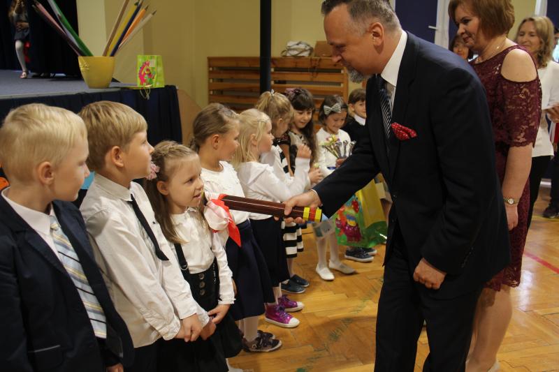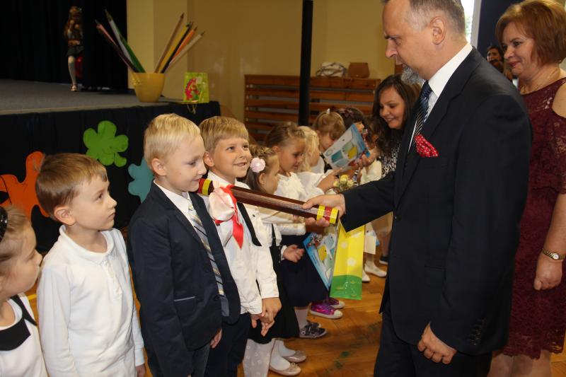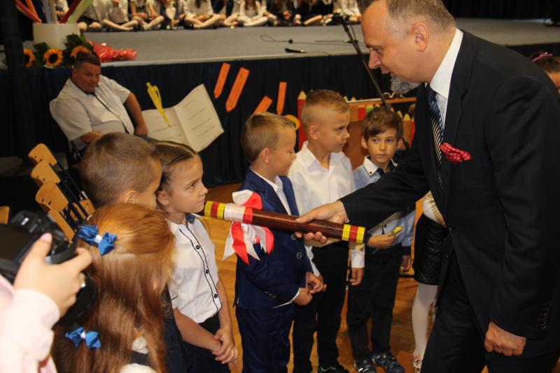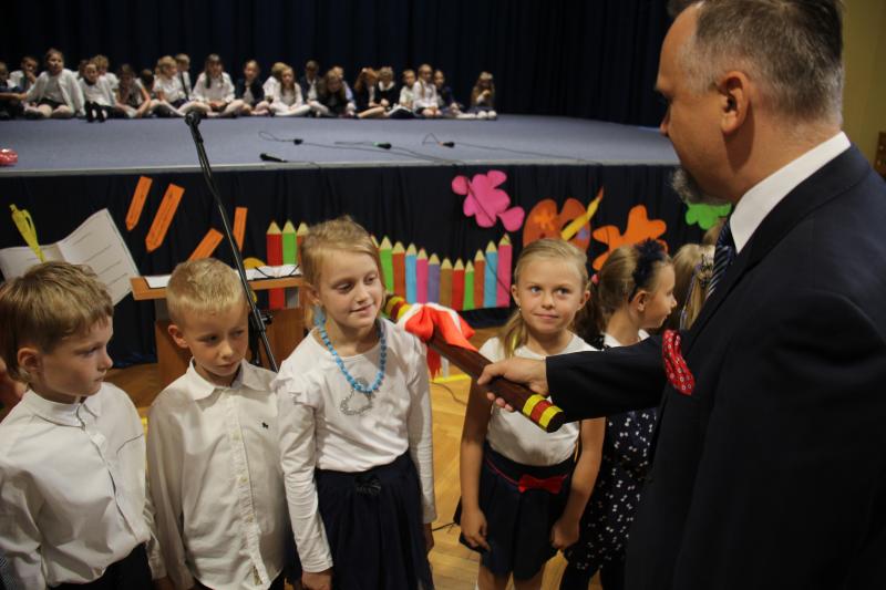 W dniu rozpoczęcia roku szkolnego miało miejsce również drugie bardzo ważne wydarzenie – pasowanie pierwszoklasistów na uczniów. Dla adeptów było to tym większe przeżycie, że w ceremonii pasowania uczestniczył burmistrz miasta. Włodarz podchodził do każdego ucznia, wypowiadając zdanie: „Pasuję Cię na pierwszoklasistę!” Wypada dodać, że ten nieomal rycerski ceremoniał odbywał się z pomocą dużego kolorowego ołówka przyozdobionego biało-czerwoną kokardą. Po uroczystym pasowaniu pierwszoklasiści w skupieniu i podniosłej atmosferze złożyli ślubowanie - przyrzekli, że będą dobrymi uczniami, zobowiązali się uczciwie i rzetelnie pracować, dbać o dobre imię szkoły i kochać ojczyznę.
