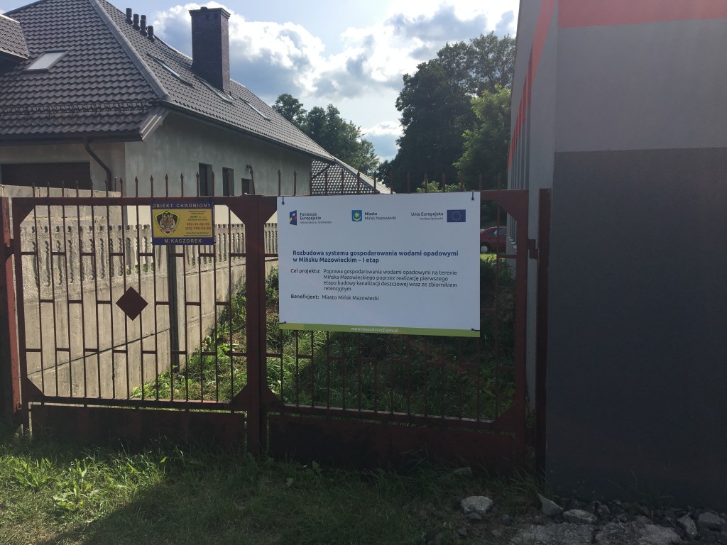Trwa postępowanie przetargowe na wykonanie zadania „Budowa ulicy Jaśminowej w Mińsku Mazowieckim”, w ramach którego będzie budowana kanalizacja deszczowa w ulicy, co stanowi koszt kwalifikowany w projekcie. Planowany termin podpisania umowy z wykonawcą to połowa września br. W latach 2018-2019 planowana jest realizacja zadania „Budowa ulicy Osiedlowej w Mińsku Mazowieckim”, gdzie również budowa kanalizacji deszczowej w ulicy stanowi koszt kwalifikowany w projekcie. Miasto zleciło wykonanie dwóch tablic informacyjnych, które zostały zamontowane na ogrodzeniach przy ul. Jaśminowej i ul. Osiedlowej. Zakończenie projektu planowane jest w połowie 2019 roku.