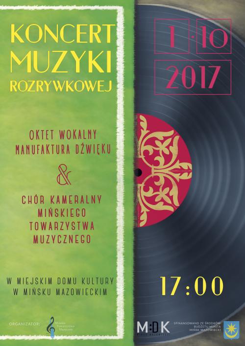 Mińskie Towarzystwo Muzyczne zaprasza na koncert 1 października 2017 o godz. 17:00 do Miejskiego Domu Kultury.