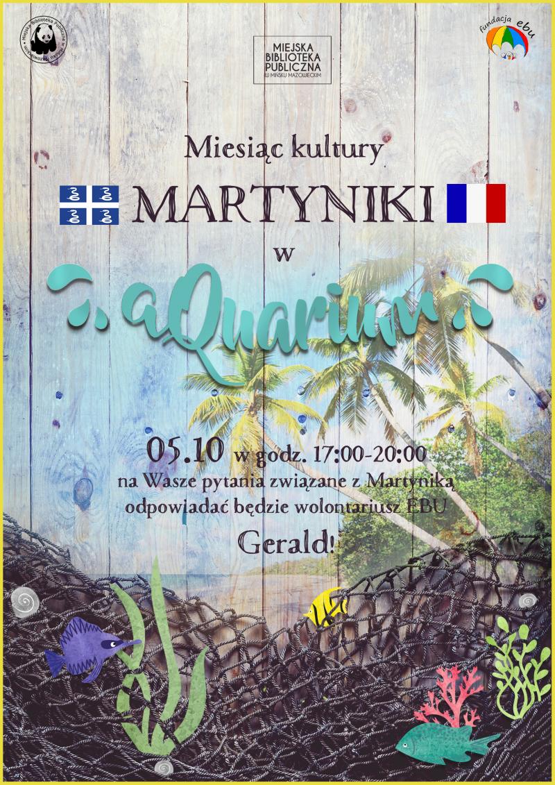 Dla zainteresowanych, przez cały październik dostępna będzie również info-gazetka i selekcja książek z Martyniką w tle do poczytania na miejscu. W czwartki aQarium otwarte od 12.00 do godziny 20.00. W pozostałe dni od 8.00 do 16.00.