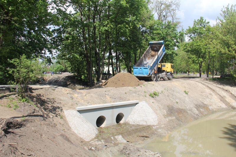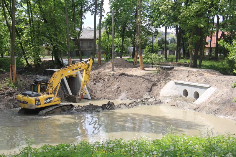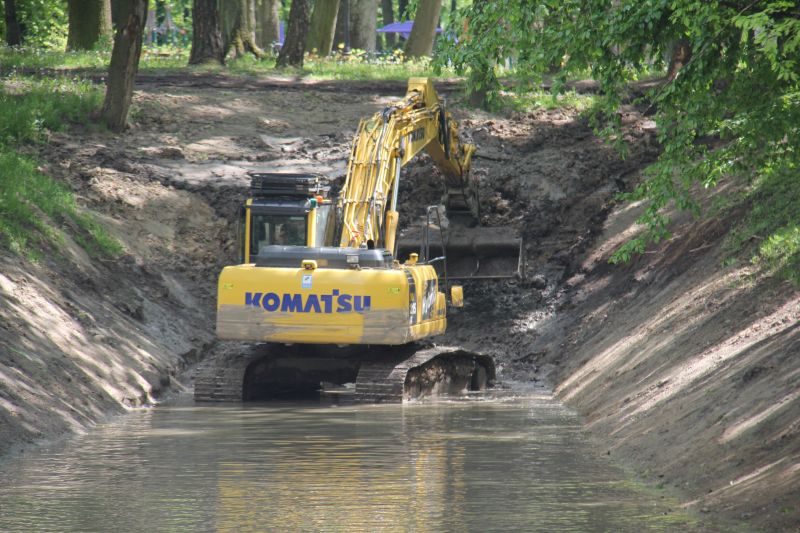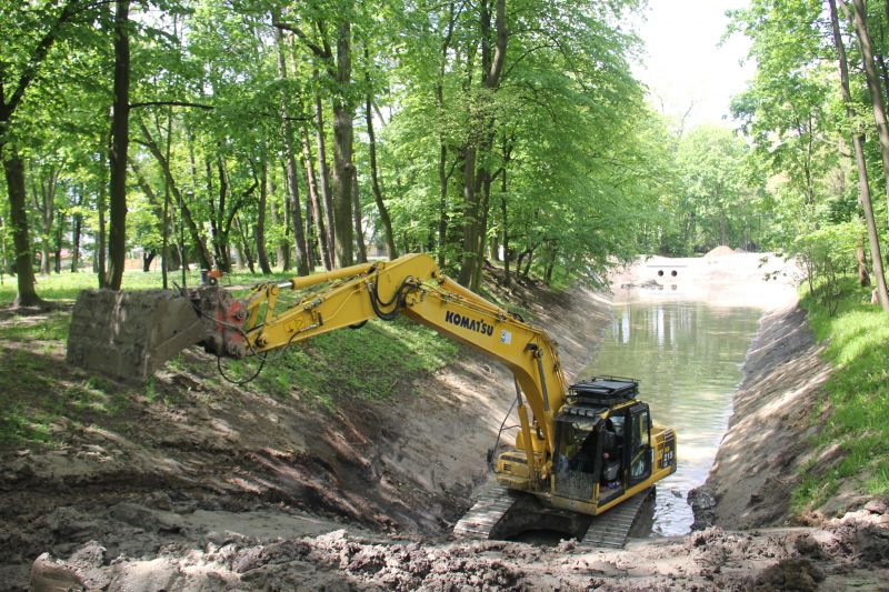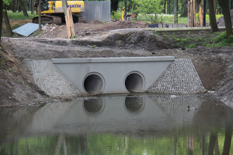 Trwają kolejne prace przy przebudowie zbiorników retencyjnych w parku miejskim.