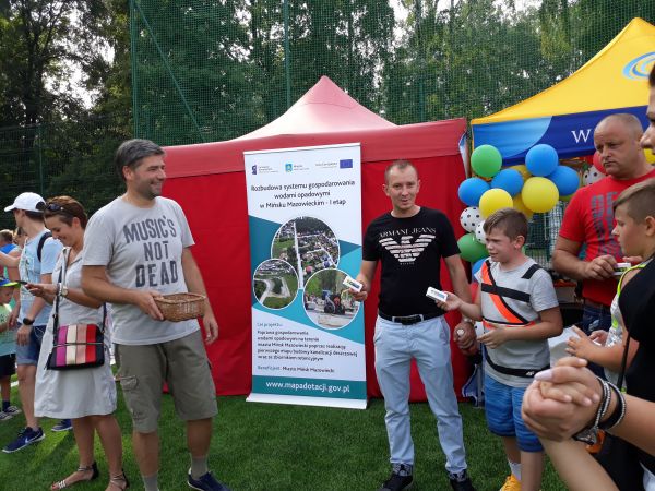 W dniu 2 września 2018 r podczas 5. Mińskiego Dnia Rodziny i Pikniku Sportowego MOSiR realizowana była po raz kolejny promocja projektu  pn. „Rozbudowa systemu gospodarowania wodami opadowymi w Mińsku Mazowieckim - I etap", poprzez spotkania z uczestnikami pikniku  z naszego miasta i powiatu mińskiego, wśród których rozdawane były pendrive z informacjami dotyczącymi realizowanego projektu.  Promocja cieszyła się dużym zainteresowaniem uczestników.