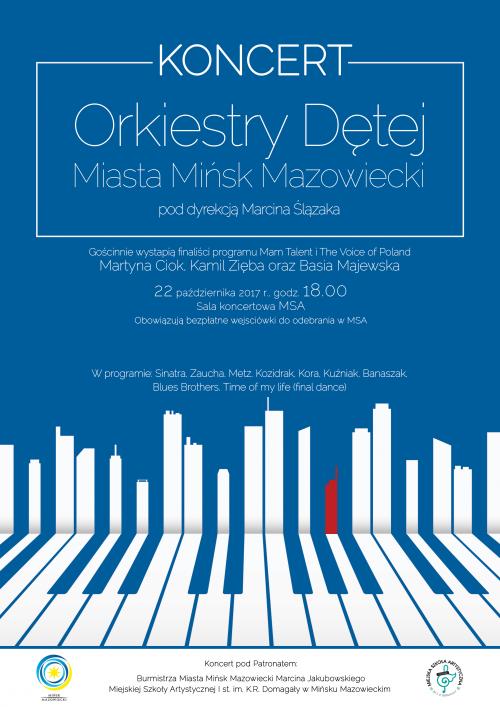 Występ orkiestry wpisuje się w cykl koncertów, który to orkiestra rozpoczęła prawie dwa lata temu. W pamięci mamy patriotyczny koncert 3 majowy, który cieszył się niezwykłą popularnością czy też multimedialny koncert z muzyką filmową, który przypomniał nam wówczas wiele utworów tego gatunku. Przyszła zatem pora na ambitną - polską piosenkę, ale nie tylko tą polską – pojawiły się także zagraniczne. Oprócz niej nie zabrakło oczywiście muzyki instrumentalnej. Z orkiestrą wystąpił absolutny „top” wokalny - Martyna Ciok – Zadebiutowała na 47. Krajowym Festiwalu Piosenki Polskiej w Opolu. Jest finalistką muzycznego programu telewizyjnego „Śpiewaj i Walcz”. Uczestniczyła także w programie „The Voice of Poland” oraz „Mam Talent”. Występowała z różnymi artystami polskiej sceny muzycznej a od 2012 roku współpracuje z Filharmonią Narodową w Warszawie jako wokalistka w koncertach edukacyjnych. Kamil Zięba absolwent Wydziału Wokalno-Aktorskiego (specjalność – Musical) Akademii Muzycznej im. Stanisława Moniuszki w Gdańsku. Grał na deskach teatrów Trójmiasta i Podkarpacia. Kreował główną rolę w musicalu Wonderful Town Leonarda Bernsteina, który powstał przy współpracy Filharmonii Bałtyckiej i Gdańskiej Akademii Muzycznej. Brał także udział w nagraniach dla Telewizji Polskiej, obecnie zaś współpracuje z Teatrem Miejskim w Gdyni oraz Studiem Accantus, oraz Basia Majewska – mińszczanka - absolwentka tutejszej szkoły muzycznej. Całkiem nie dawno otrzymała pierwsze wyróżnienie na Manewrach Artystycznych Wojska Polskiego w Warszawie a także wielokrotnie na festiwalu poezji śpiewanej w Krakowie.