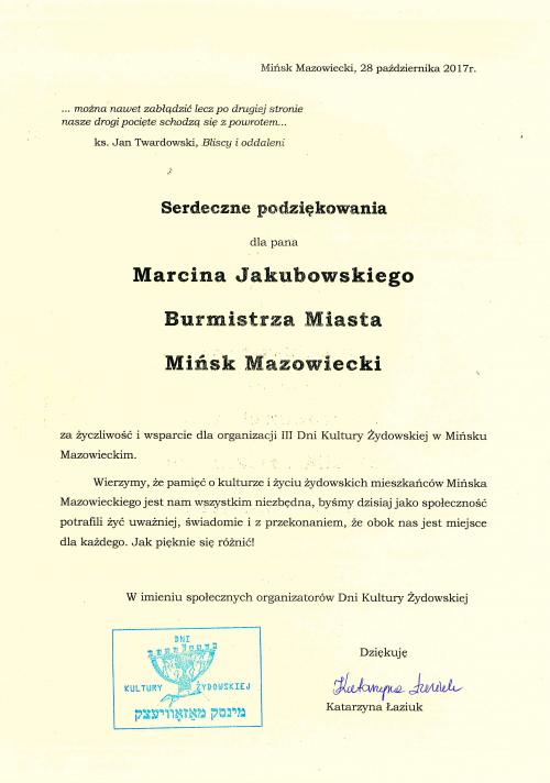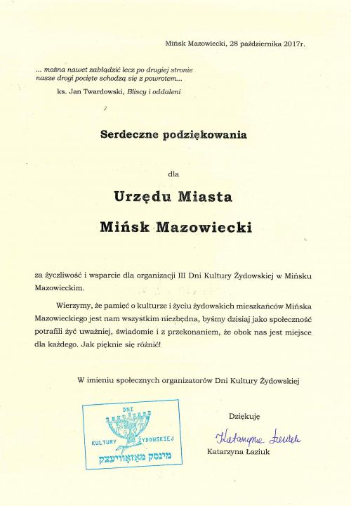 Cieszymy się, że Dni Kultury Żydowskiej wpisały się w kalendarz wydarzeń kulturalnych naszego miasta i zdobywają coraz większe zainteresowanie i przychylność mieszkańców.