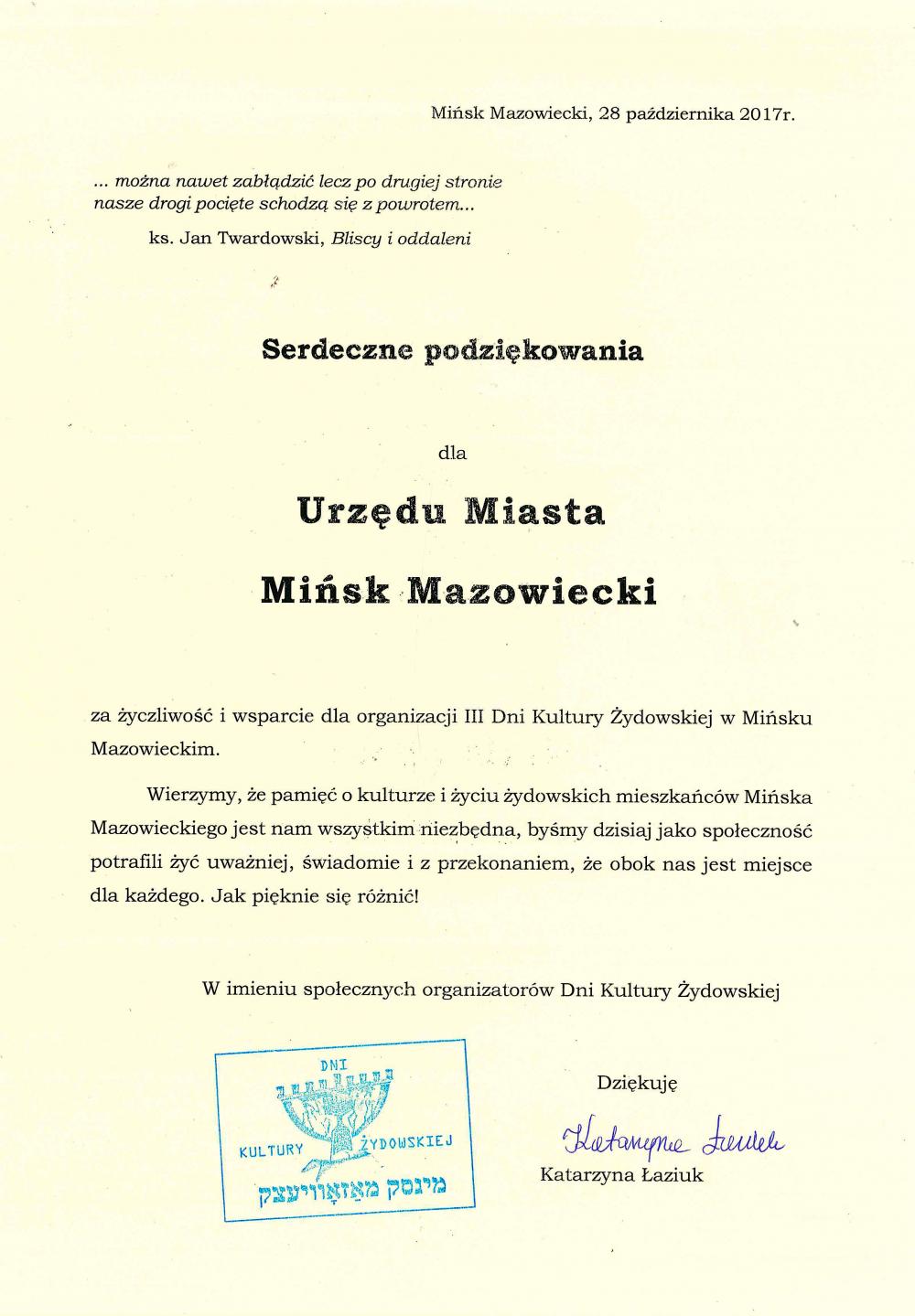 Podziękowania dla Burmistrza Miasta i Urzędu |