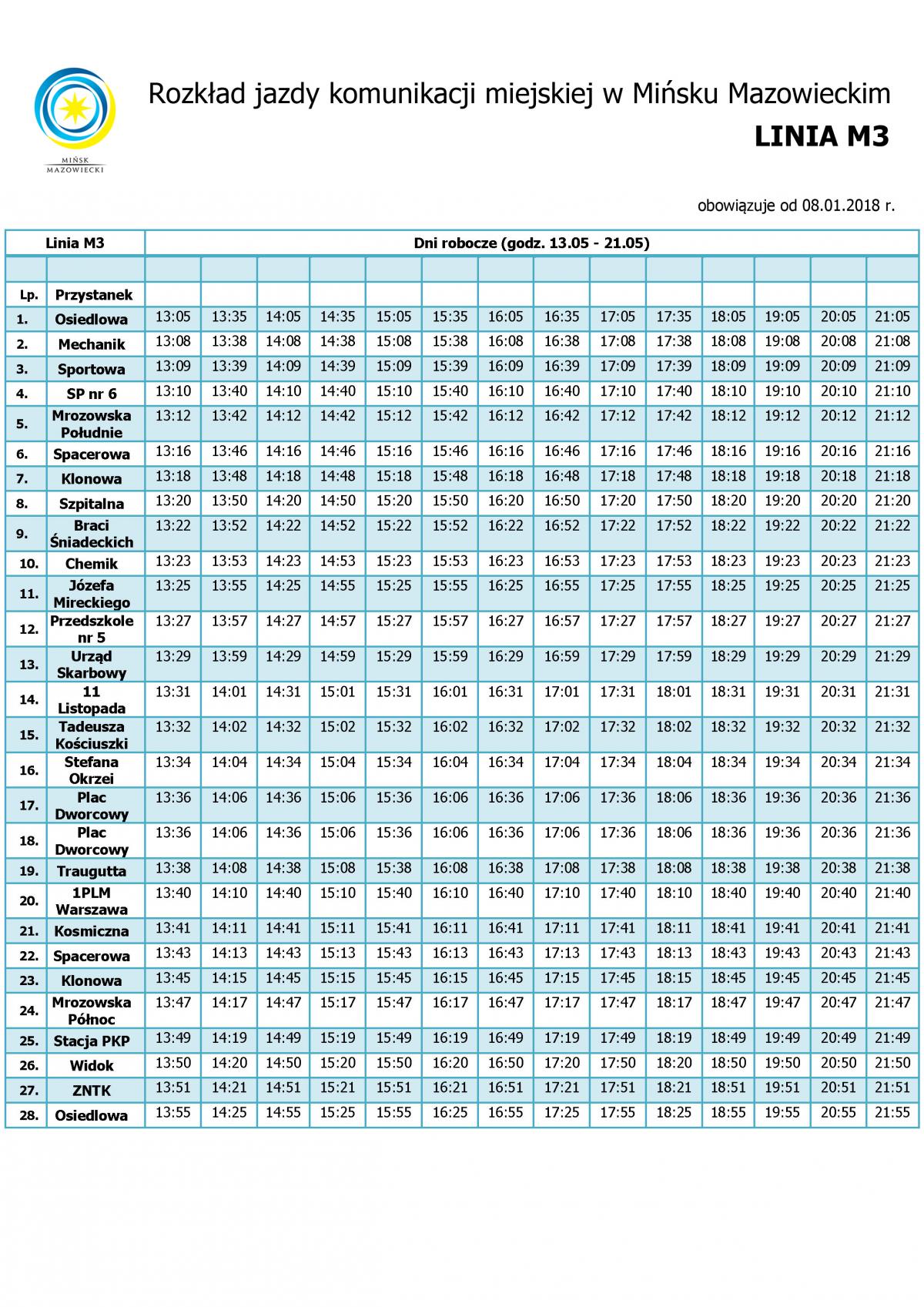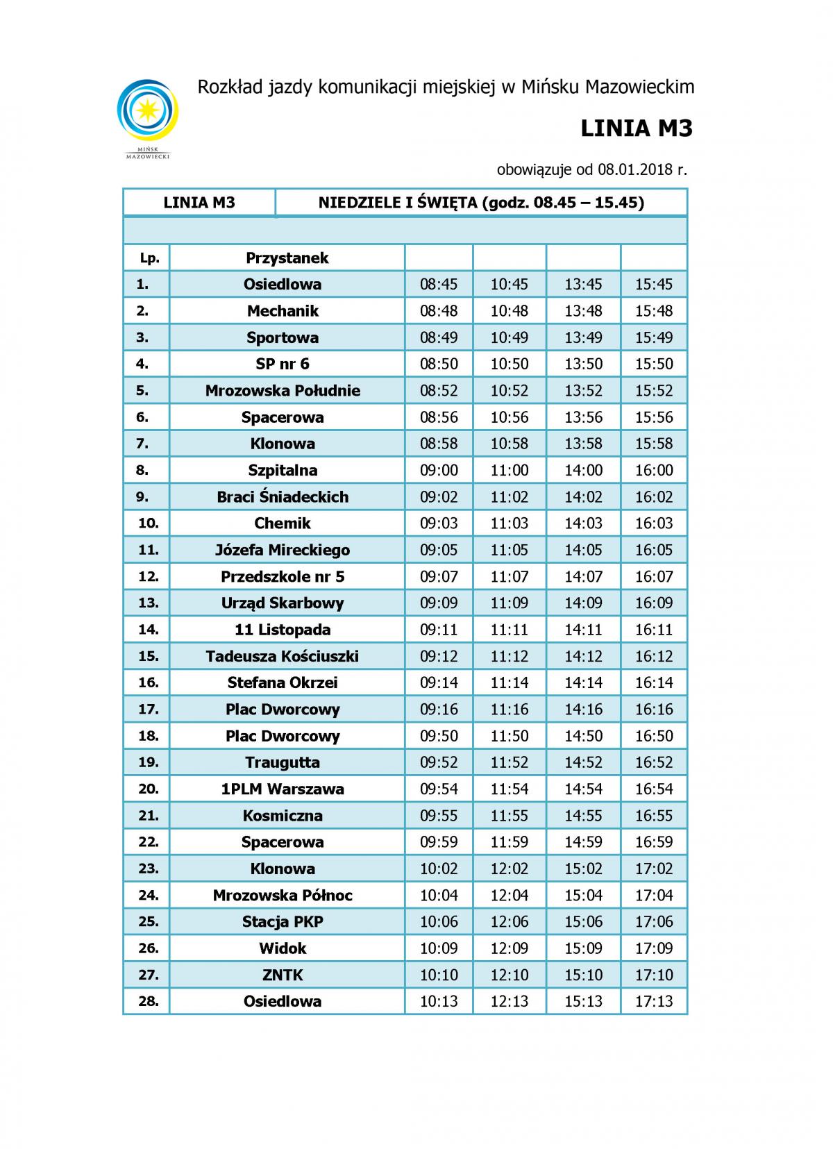 LINIA M3 NIEDZIELE I ŚWIĘTA