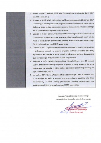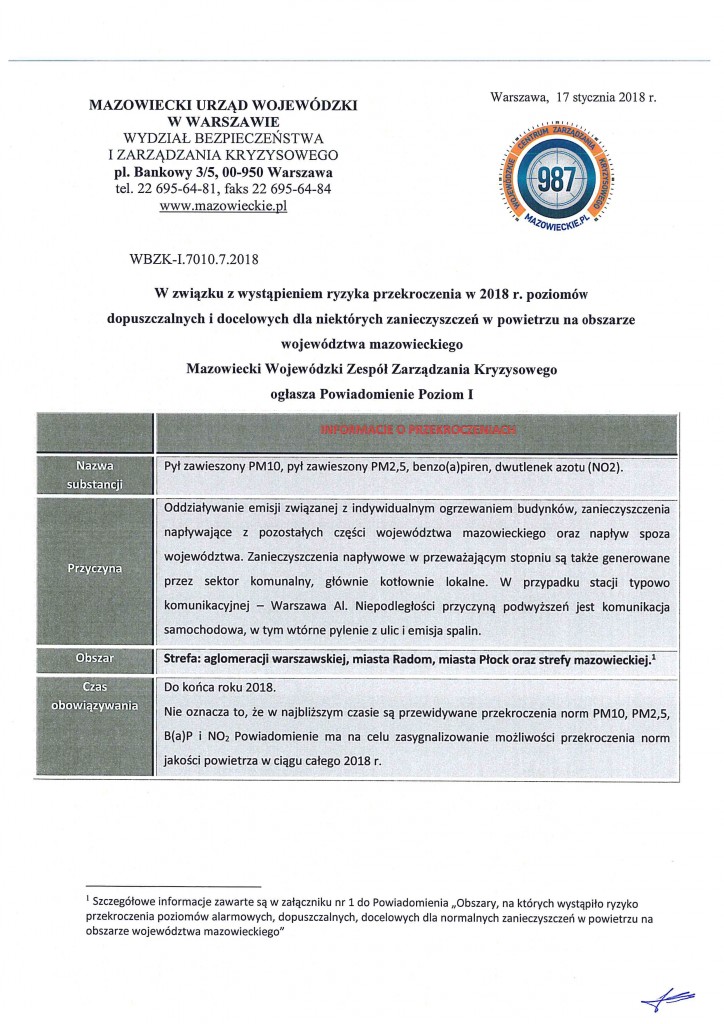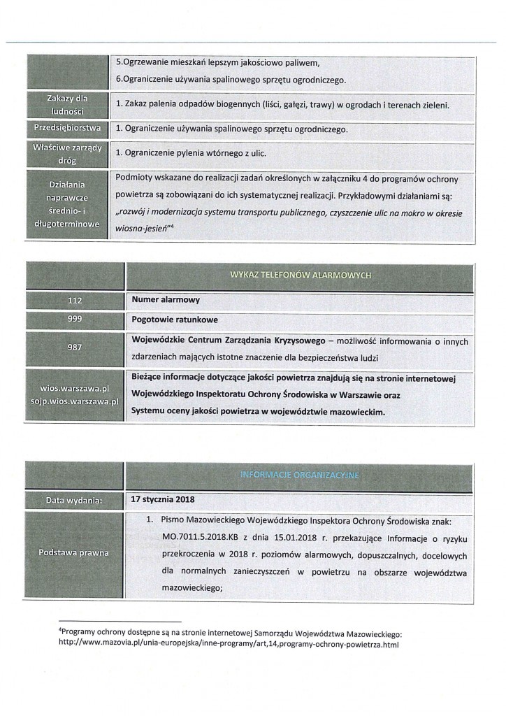 W celu zapobiegania negatywnego oddziaływania na zdrowie ludzi oraz środowisko Sejmik Województwa Mazowieckiego uchwałą Nr 162/17 z dnia 24 października 2017 r. wprowadził na obszarze województwa mazowieckiego ograniczenia i zakazy w zakresie eksploatacji instalacji: