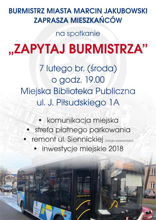 W środę, 7 lutego, w Miejskiej Bibliotece Publicznej miało miejsce spotkanie burmistrza z mieszkańcami. Rozmowy toczyły się wokół dwóch najważniejszych ostatnio tematów, czyli bezpłatnej komunikacji miejskiej oraz strefy płatnego parkowania. Mińszczanie sugerowali m.in. gdzie można umieścić dodatkowe przystanki, jeśli będzie taka możliwość oraz prosili o poszerzenie komunikacji o ościenną gminę.