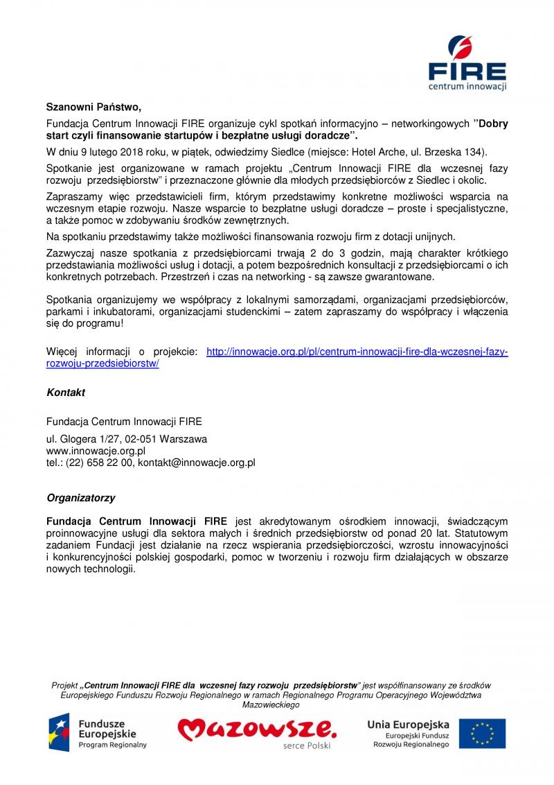 ”Dobry start czyli finansowanie startupów i bezpłatne usługi doradcze” |