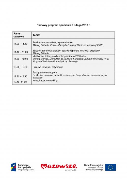 W dniu 19 lutego 2018r. w sali konferencyjnej (parter) w siedzibie Urzędu Marszałkowskiego Województwa Mazowieckiego przy ul. Jagiellońskiej 26, 03-719 Warszawa o godzinie 10.00 odbędzie się spotkanie, na którym zostaną przedstawione szczegóły prac związanych z opracowywaniem projektu.