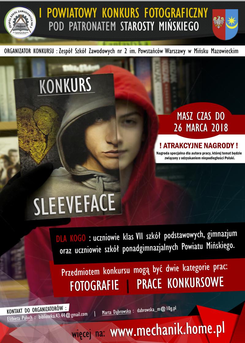 Zespół Szkół Zawodowych nr 2 im. Powstańców Warszawy w Mińsku Mazowieckim zaprasza uczniów do udziału w konkursie fotograficznym “Sleeveface z książką” pod Patronatem Starosty Mińskiego.