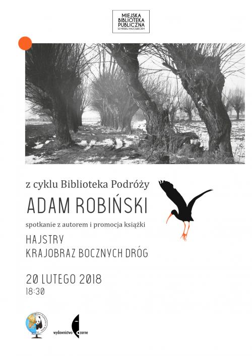 W pierwszej chwili pytasz: hajstry ? A co to jest? To bocian czarny. Piękny ptak. "Kiedyś było ich mnóstwo - tłumaczy Adam Robiński - a teraz, by je zobaczyć, potrzeba trochę cierpliwości i wiedzy, gdzie ich szukać." Podobnie jak Polski. Nie tej z przewodników i kolorowych folderów. Tej równie pięknej, a może nawet piękniejszej: tej, którą można odkryć tylko schodząc z bocznych dróg, także blisko nas, na Mazowszu. Polskę dzikich rzek, rodzimej Sahary i Arktyki, zdziczałych starych sadów i pięknego samotnika - bociana czarnego. Zanurzymy się w tę Polskę z Adamem Robińskim, autorem książki "Hajstry. Krajobraz bocznych dróg" już wkrótce, 20 lutego o godzinie 18.30 na spotkaniu z cyklu Biblioteka Podróży. Niech będzie to zachęta do wędrówek po okolicy. W końcu wkrótce wiosna!