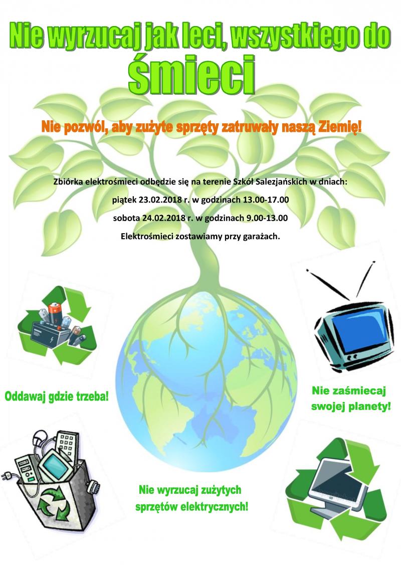 Nie pozwól, aby zużyte sprzęty zatruwały nasza Ziemię! Zbiórka elektrośmieci odbędzie się na terenie Szkół Salezjańskich w dniach: