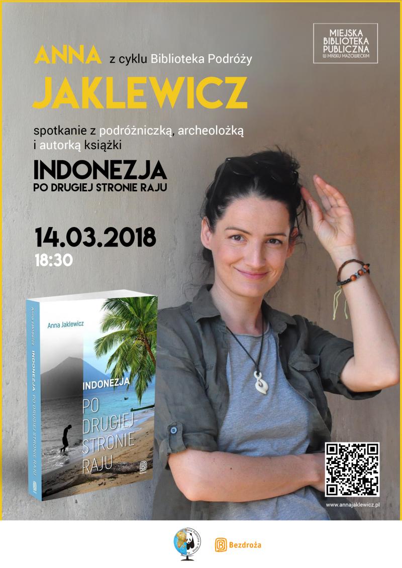 14 marca o godz. 18.30 zapraszamy na spotkanie z cyklu Biblioteka Podróży z autorką książki "Indonezja. Po drugiej stronie raju" - Anną Jaklewicz, podróżniczką, archeolożką i fotografką. Swoje relacje z podróży publikuje między innymi w „National Geographic TRAVELER” i magazynie podróżników „TamTam”. Opublikowała także Niebo w kolorze indygo. Chiny z dala od wielkiego miasta.