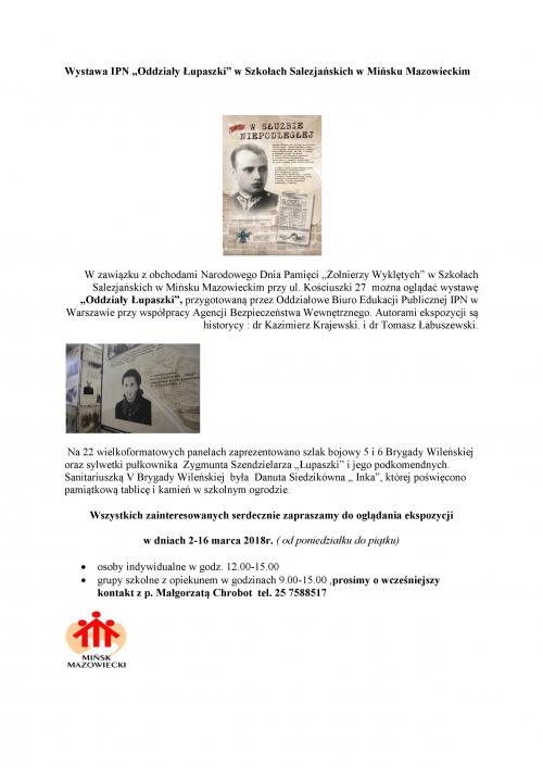Zapraszamy na wystawę "Odziały Łupaszki" przygotowaną przez IPN, którą będzie można oglądać od 2 do 16 marca w Szkołach Salezjańskich