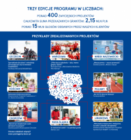 W ciągu trzech dotychczasowych edycji programu „Decydujesz, pomagamy” klienci Tesco w Polsce wrzucili do urn ponad 15 mln żetonów, wybierając tym samym najciekawsze pomysły. W ten sposób Tesco, słuchając głosów lokalnych społeczności wsparło 400 projektów, przekazując na ich realizację 2,15 mln złotych.