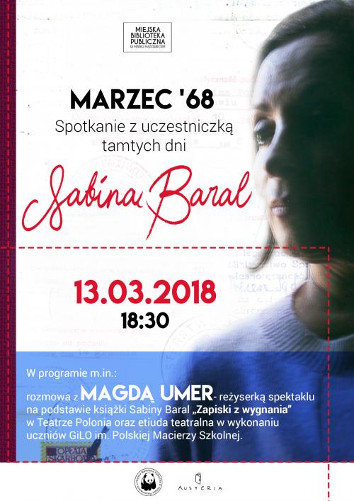 13 marca o godzinie 18.30 zapraszamy na spotkanie z Sabiną Baral wokół jej książki "Zapiski z wygnania". W programie między innymi rozmowa z Magdą Umer, która reżyseruje w Teatrze Polonia sztukę na podstawie książki Sabiny Baral (we wspólnej adaptacji z Krystyną Jandą). Wieczór zakończy etiuda teatralna w wykonaniu uczniów GiLO im. Polskiej Macierzy Szkolnej w Mińsku Mazowieckim.