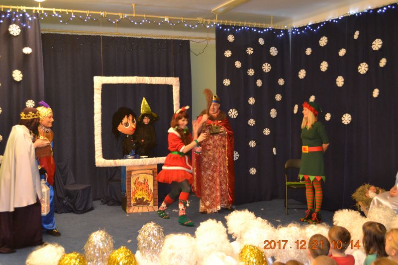 Głównym punktem tych uroczystości było przedstawienie pt. „Dostawcy świątecznych prezentów”. W zabawny sposób rodzice i nauczyciele z grupy teatralnej przybliżyli dzieciom tradycje bożonarodzeniowe z różnych państw europejskich.