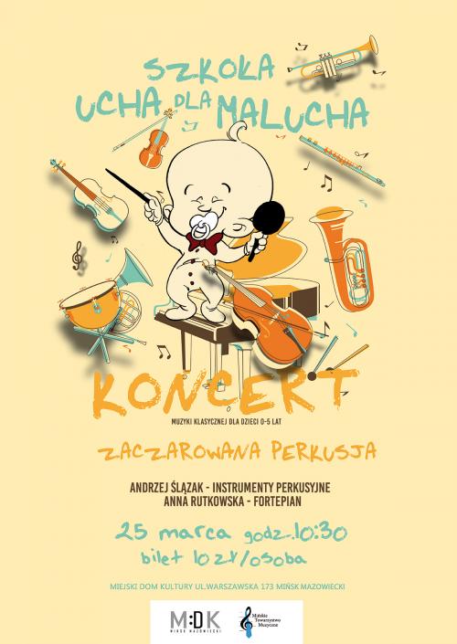 Program koncertu składać się będzie prezentacji instrumentów perkusyjnych (dzieci będą mogły próbować gry na tych instrumentach). Artyści wykonają także utwory na marimbę solo, marimbę z fortepianem (utwory w stylu bardziej rozrywkowo - jazzowym) oraz utwory na fortepian solo.