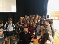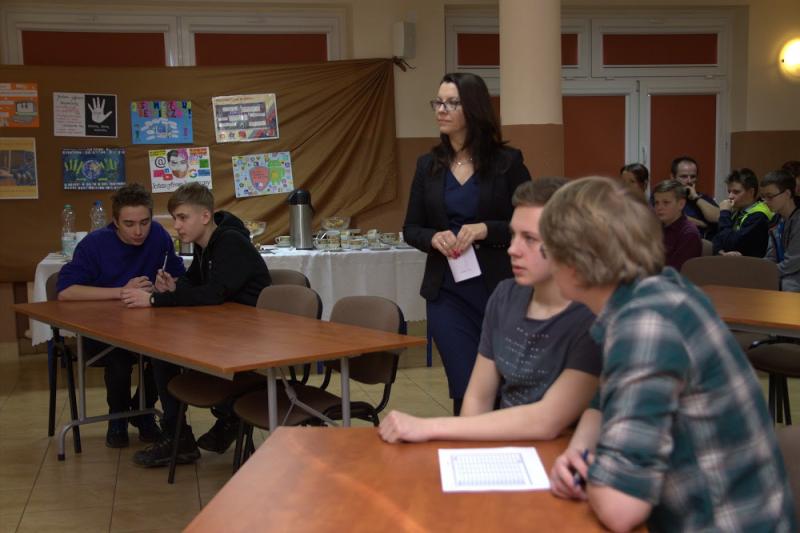 Nauczyciele języka polskiego zadbali również o to, by miesiąc polonistyczny był szansą dla trzecioklasistów na powtórzenie i utrwalenie ich wiedzy przed egzaminem gimnazjalnym. Do szkoły przyjechała pani prof. dr hab. Violetta Machnicka w Wydziału Humanistycznego UPH w Siedlcach, która przypomniała uczniom informacje o Adamie Mickiewiczu z okazji 220. rocznicy urodzin wieszcza. Kolejną nowością było włączenie w obchody Szkolnego Święta Języka Polskiego najmłodszych uczniów, czyli klasy 1a i 1b. Gimnazjaliści z klasy akademickiej (3a) spróbowali swoich sił w roli nauczycieli i przez cały tydzień pomagali prowadzić lekcje języka polskiego u pierwszaków. Zaproponowali im m.in. dyktanda graficzne, dyktanda biegane, wspólne wykonywanie plakatów czy wyszukiwane w gazetach poznanych literek. Dzieciom podobały się zajęcia i z radością brały udział w „Modzie na polski”. Po raz pierwszy szkolnej społeczności zaproponowano również wyzwanie czytelnicze „Daj się przyłapać na czytaniu”, które polega na podjęciu decyzji o tym, jaką książkę ktoś zdecyduje się przeczytać. Podsumowanie akcji zostało zaplanowane na kwiecień i będzie połączone z obchodami Dnia Książki.