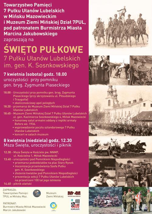 - 17.25 - wymarsz z Muzeum Ziemi Mińskiej Dział 7PUL na ul Sosnkowskiego Poczet Sztandarowy 7PUL i poczet sztandarowy 7 Batalionu Kawalerii Powietrznej z Tomaszowa Mazowieckiego