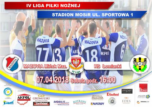 Zapraszamy na mecz Mazovia Mińsk Mazowiecki vs KS Łomianki - 7.04.2018, sobota, godz. 16.00, stadion przy ul. Sportowej 1