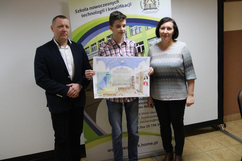 Starostę Mińskiego reprezentowała Pani Monika Piętka z Wydziału Oświaty i Promocji, obecna była Przewodnicząca Rady Rodziców ZSZ nr 2 Pani Katarzyna Grabarczyk, oraz pomysłodawczyni i mama konkursu Pani Alina Łodyga, wieloletni i zasłużony nauczyciel matematyki.