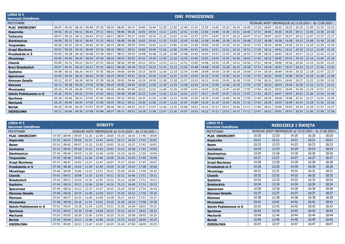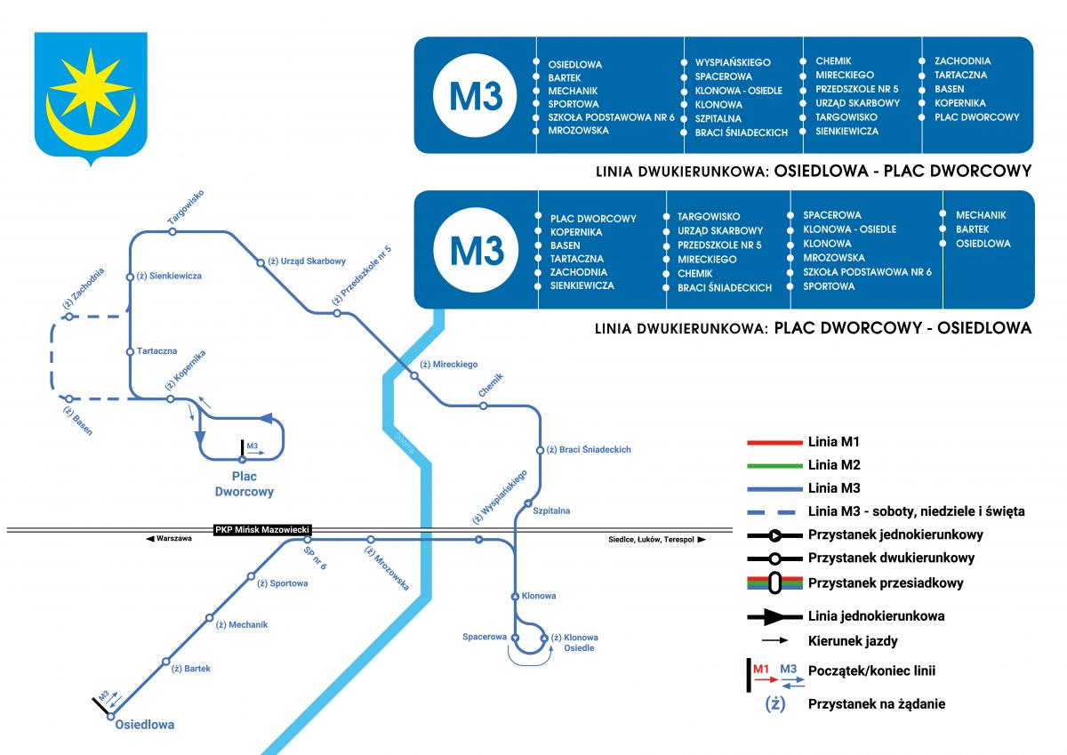 Linia M3 - kierunek - Plac Dworcowy - Osiedlowa - od 14 czerwca 2020 r.