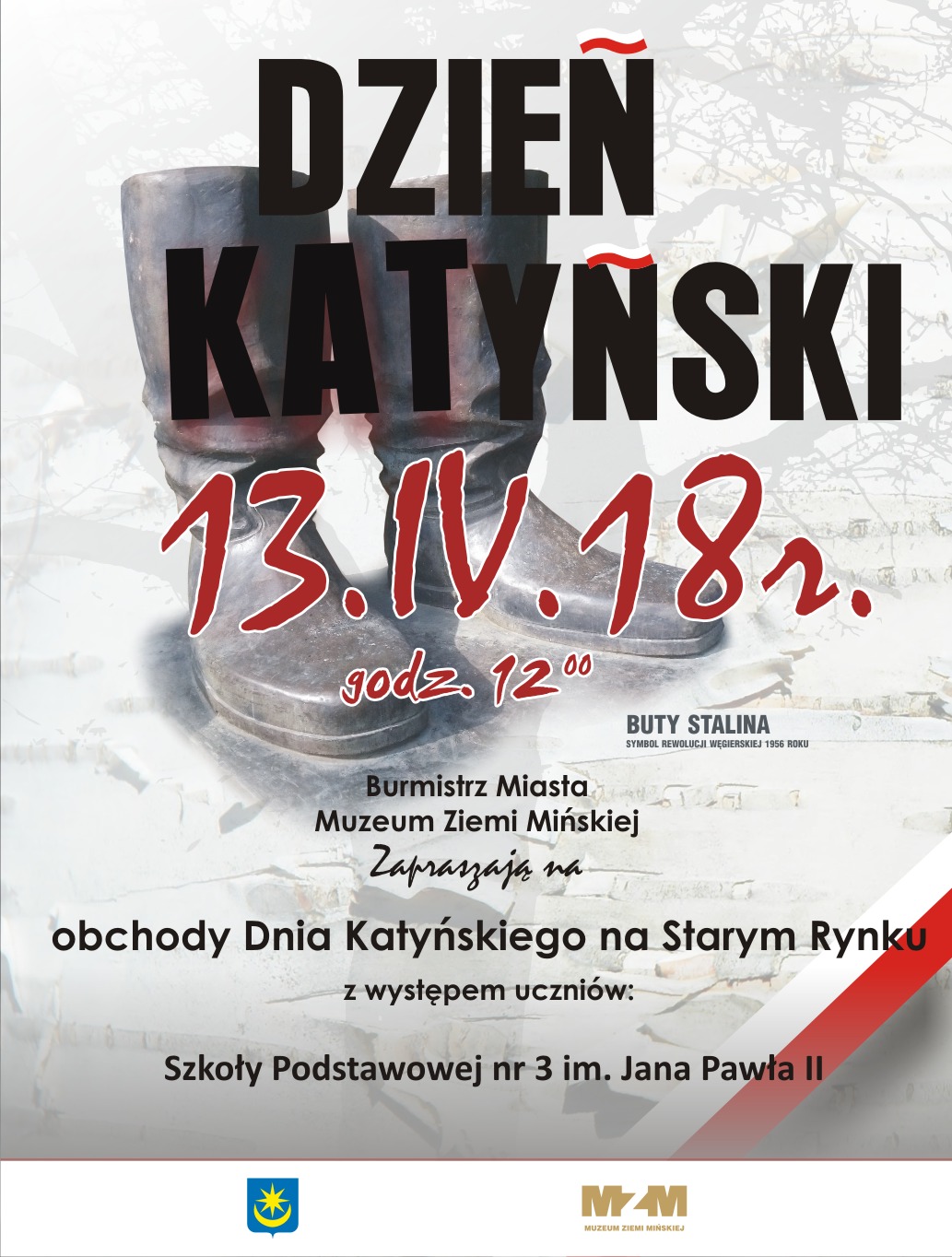 Burmistrz Miasta Marcin Jakubowski i Muzeum Ziemi Mińskiej zapraszają na obchody Dnia Katyńskiego na Starym Rynku, 13.04.2018, godz. 12.00