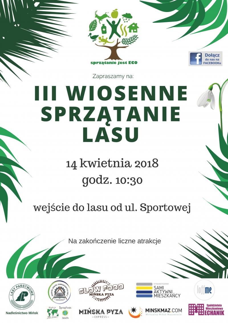 Nadleśnictwo Mińsk Mazowiecki zaprasza na III WIOSENNE SPRZĄTANIE LASU - - 14 kwietnia 2018 - godz. 10:30 - wejście do lasu od ul. Sportowej. Na zakończenie liczne atrakcje.