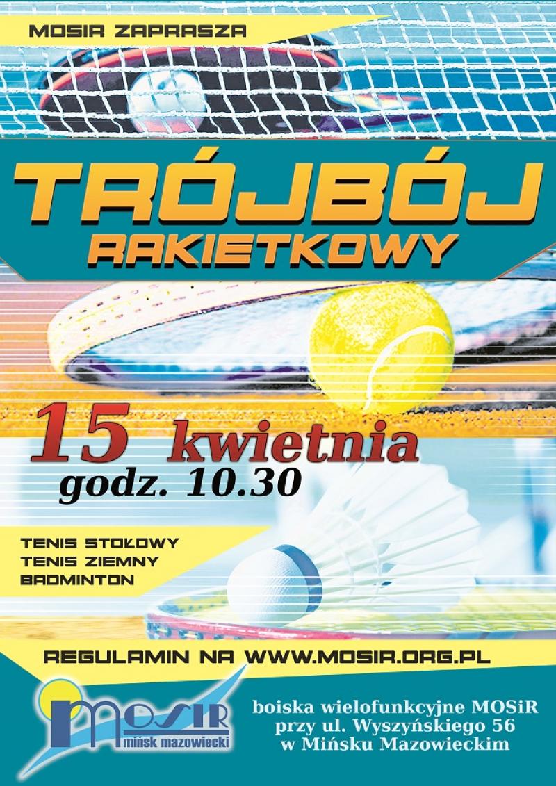 MOSIR ZAPRASZA NA "TRÓJBÓJ RAKIETKOWY" - 15.04.2018, godz. 10.30 - boiska wielofunkcyjne MOSiR - Tenis Stołowy, Tenis Ziemny, Badminton... regulamin zawodów na www.mosir.org.pl