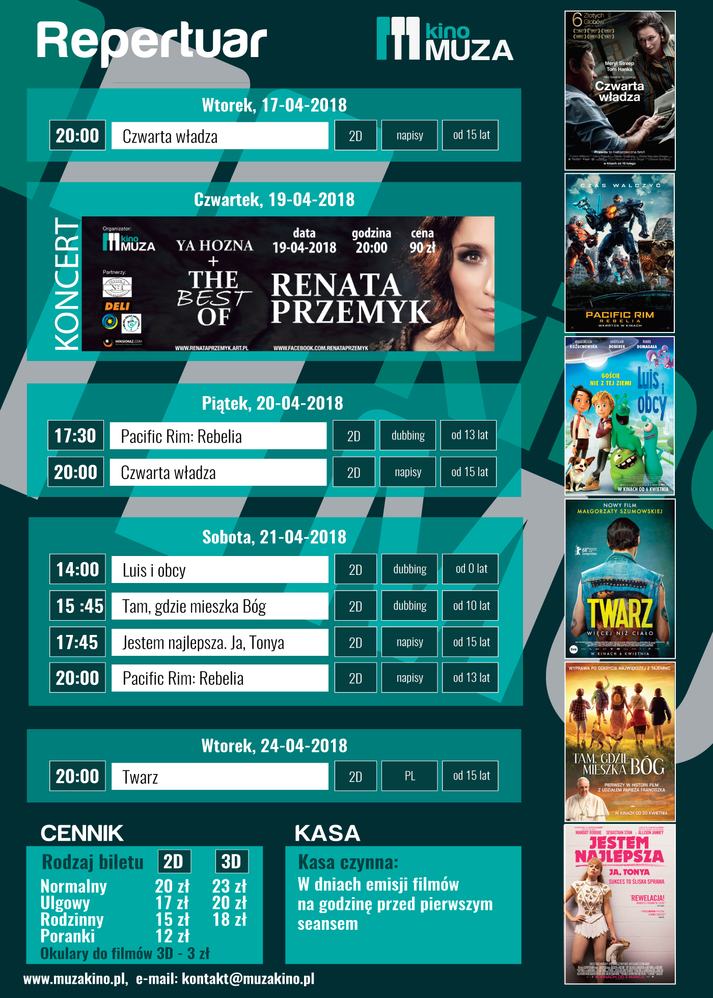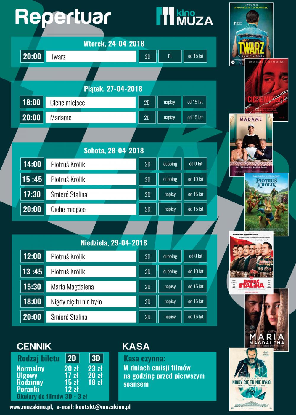 Aktualny repertuar kina MUZA w dniach 24 - 29 kwietnia 2018. Więcej szczegółów na www.muzakino.pl