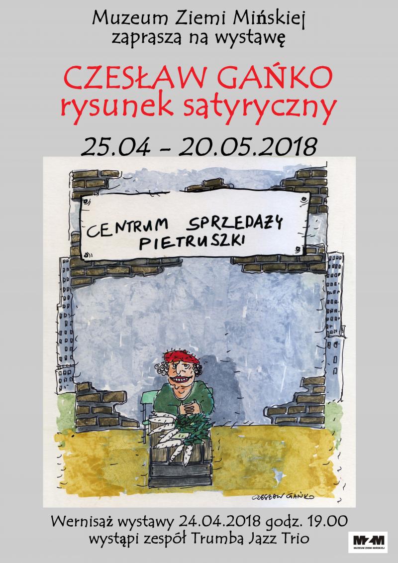 Muzeum Ziemi Mińskiej zaprasza na wystawę rysunku satyrycznego Czesława Gańko w dniach 25.04 - 20.05.2018 r. Wernisaż wystawy 24.04.2018 r. o godz.19.00, wystąpi zespół Trumba Jazz Trio.