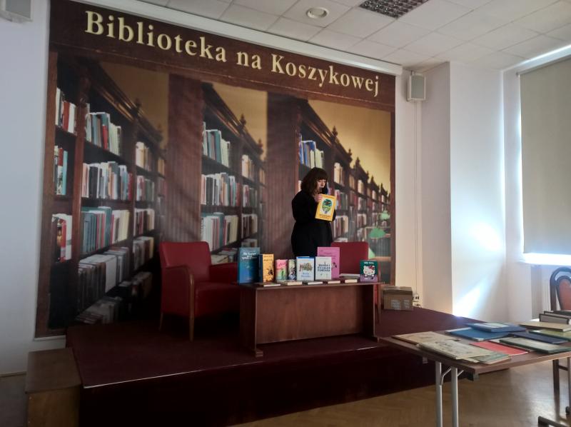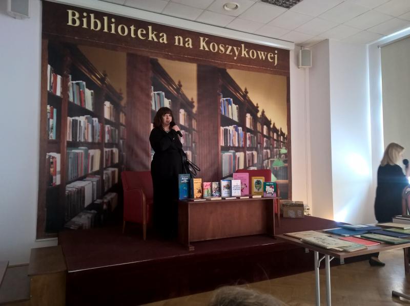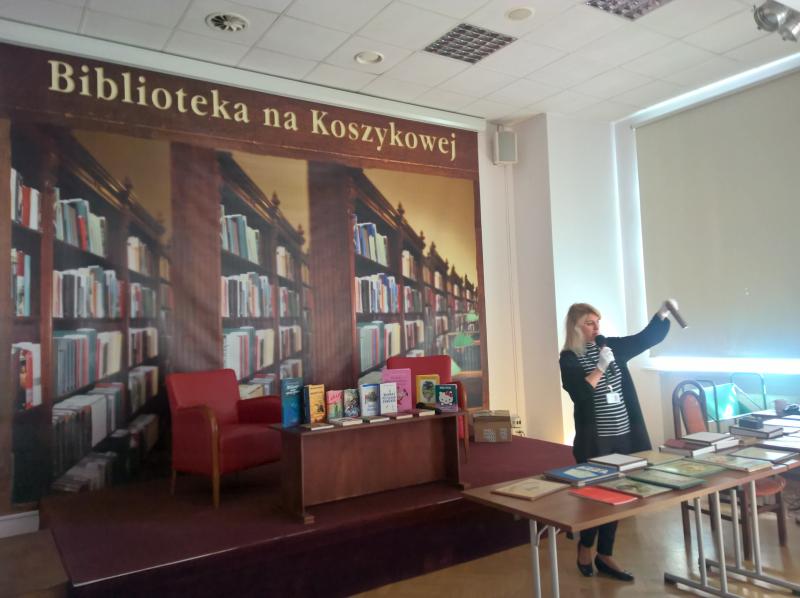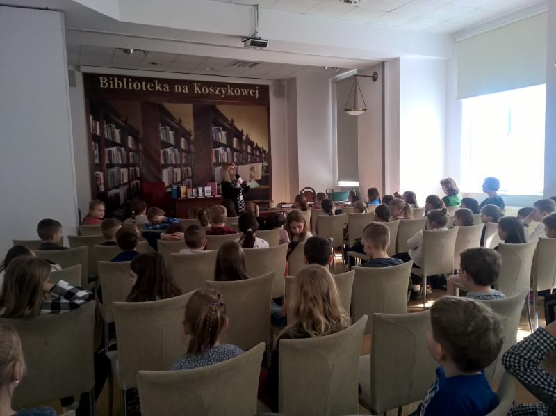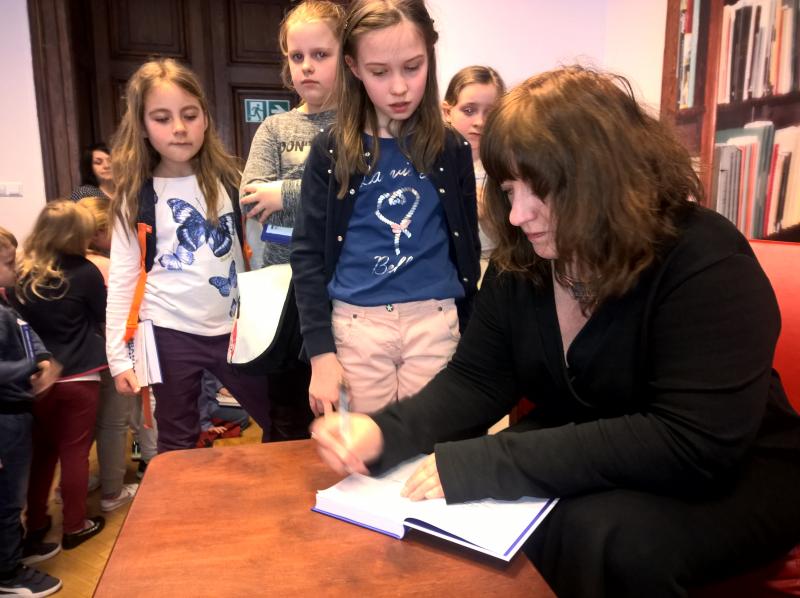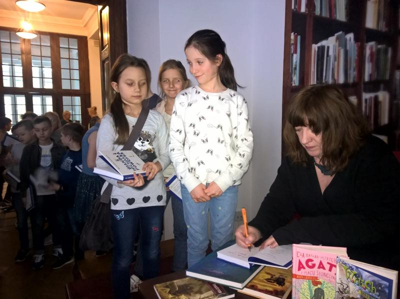 Kolejnym ciekawym doświadczeniem dla uczniów było spotkanie autorskie z p. Ewą Karwan-Jastrzębską w Muzeum Książki Dziecięcej przy ul. Koszykowej w Warszawie. Zanim jednak do niego doszło, przedstawiciele biblioteki zaprosili zwiedzających na prelekcję nt. najciekawszych zbiorów muzealnych, której oczywiście towarzyszyła wystawa tzw. „białych kruków”. Zwiedzający z zainteresowaniem wysłuchali informacji o historii Muzeum Książki Dziecięcej, o jego strukturze organizacyjnej, księgozbiorze, najciekawszych książkach oraz o zaangażowaniu instytucji w promocje dobrej książki. Najstarsze zbiory Muzeum pochodzą z XIX wieku, a obecnie posiada ono około stu tysięcy woluminów.