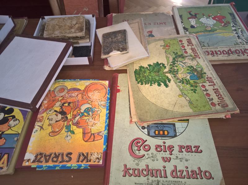 Zaprezentowane zbiory wzbudziły ogromne zainteresowanie. Pani przewodnik przeczytała uczniom fragment książki Pamiątka po Dobrej Matce Klementyny z Tańskich Hoffmanowej. Zwiedzający mogli obejrzeć z bliska takie eksponaty jak: miniaturki z lat 1824-1829 składające się na serię „Biblioteczka dla Dobrych Dzieci”, z których każdy tomik został poświęcony innej tematyce czy Samolot braci Voisin, Dla małych przyjaciół zwierząt, Co się raz w kuchni działo, Sto pociech, Gwiazdka Kazia i inne. Dodatkową atrakcją była prezentacja gier planszowych sprzed ponad stu lat.