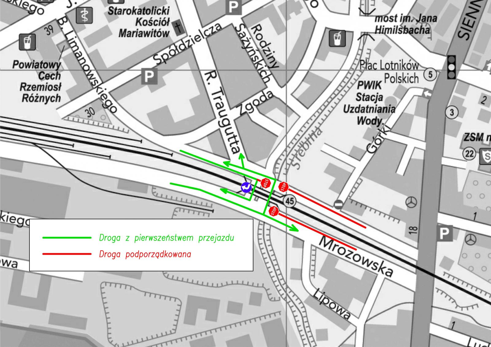 ✅Nastąpi podporządkowanie ulic Mrozowskiej i Limanowskiego przed skrzyżowaniem ulic Sosnkowskiego, Limanowskiego i Mrozowskiej w obrębie wiaduktu kolejowego jadąc od strony wschodniej (w przypadku Mrozowskiej) i z obydwu stron (w przypadku ulicy Limanowskiego), czyli od ulicy Siennickiej i stacji.