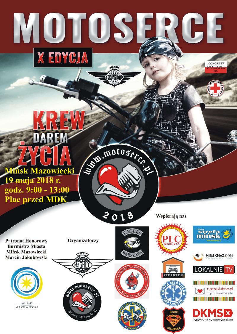 Już o godzinie 9.00 na placu przed mińskim pałacem rozpocznie się akcja MOTOSERCE, na którą serdecznie zapraszamy i która potrwa do godziny 13.00. Start rajdu nastąpi o godzinie 10.00 z placu przed „Budowlanką". Motocykliści będą mieli do przejechania ok. 87 kilometrową trasę, podzieloną na trzy etapy, biegnącą po wschodnim i południowo-wschodnim terenie powiatu mińskiego. Pierwsi rajdowicze powinni powrócić na metę przed Pałacem ok. godziny 15.30. W tym czasie można będzie obejrzeć dioramę Towarzystwa Pamięci 7. Pułku Ułanów Lubelskich, pokaz pierwszej pomocy prezentowany przez Fundację Ratownictwo Motocyklowe Polska, prezentację zabytkowych jednośladów lokalnych kolekcjonerów a także pokaz wyścigowego motocykla, który zaprezentuje mińszczanin występujący w wyścigach motocyklowych. Około godziny osiemnastej rozpocznie się Konkurs Elegancji połączony z Oceną Techniki Jazdy.