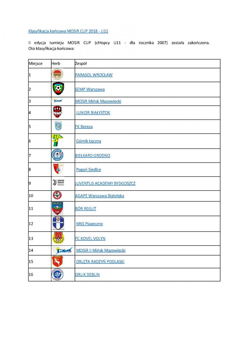 Klasyfikację najlepszy zawodnik Szkoły Podstawowej nr 2 im. Dąbrówki w Mińsku Maz. wygrał Antoni Rokicki, II miejsce Szymon Szymczykowski, III miejsce Patryk Mallach.