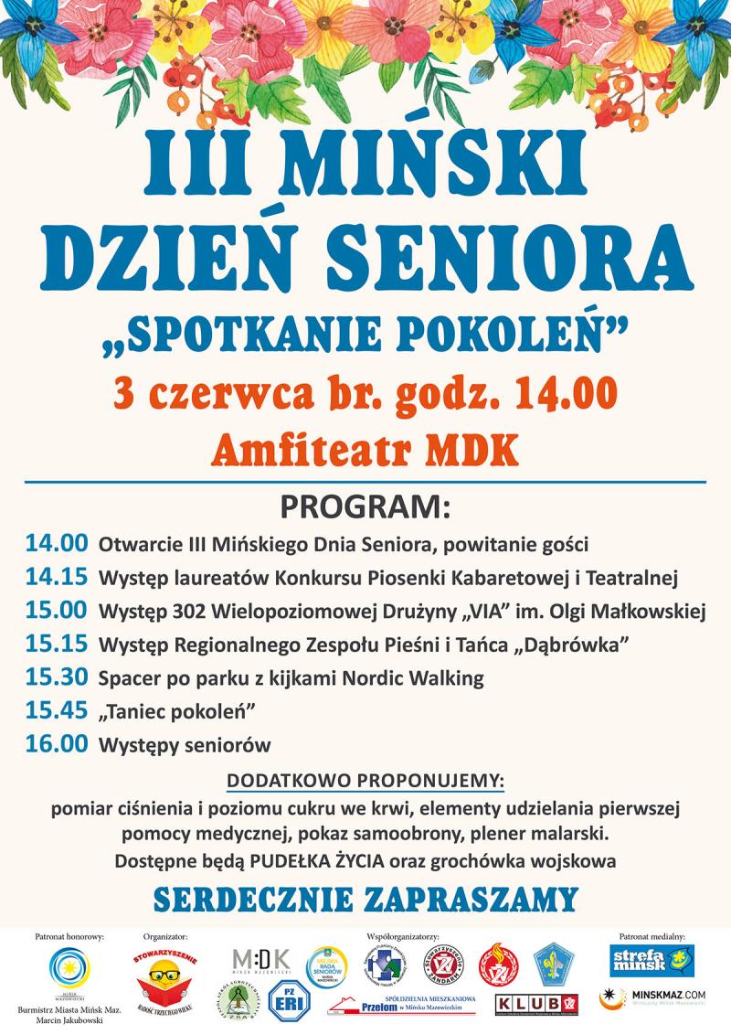 Zapraszamy na III Mińsk Dzień Seniora "Spotkanie Pokoleń" - 3 czerwca 2018 r., godz. 14.00, amfiteatr MDK. Program na załączonym plakacie...