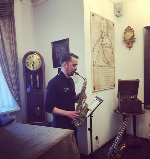 O godzinie 18.00 Muzeum ponownie wypełniło się zwiedzającymi. Na wernisaż licznie przybyli mieszkańcy naszego miasta, znajomi i przyjaciele autorki, nawet z odległych Katowic. Pani Agnieszka opowiedziała o swojej pracy, zdjęciach i oczywiście zachęcała do podróży. Wieczorne spotkanie uświetnił grą na saksofonie Karol Piątkowski.