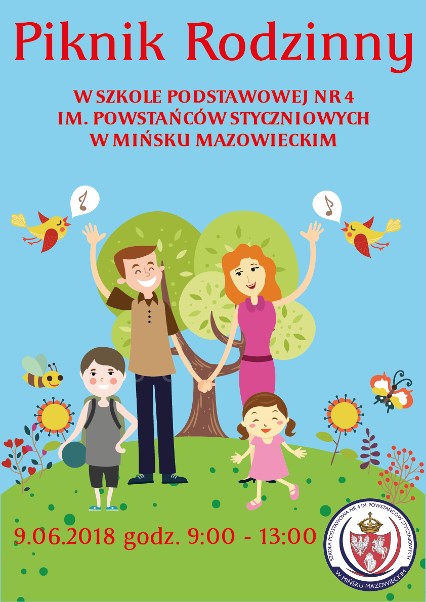 Zapraszamy na Piknik Rodzinny w Szkole Podstawowej nr 4, 9 czerwca 2018 r., godz. 9.00 - 13.00.